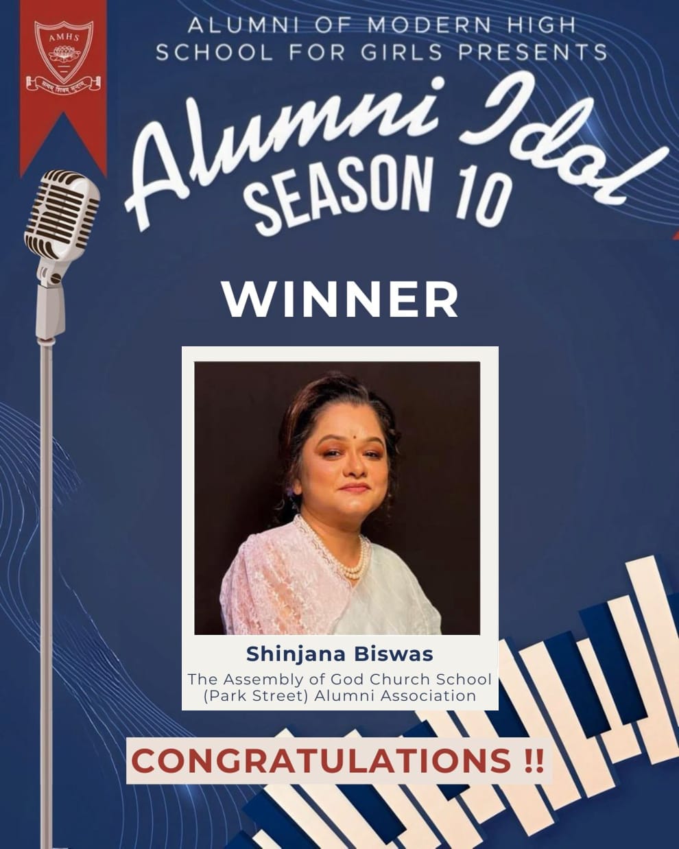 The Alumni association of Modern High School was formed in 2002, coinciding with the golden jubilee year of the school. The purpose of AMHS was to allow members to stay connected with their Alma Mater, and with each other, while indulging in meaningful and productive social, cultural and intellectual activities. Over the years, the AMHS has grown in strength and purpose, and it’s members take great pride and initiative to expand its membership base and it’s repertoire of activities.